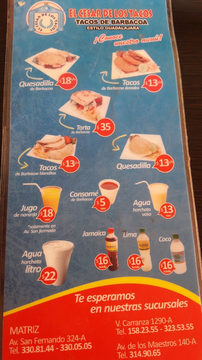 Introducing El Cesar de los Tacos, a culinary gem located at Av. San Fernando 324-A, Centro, Colima, Mexico. This vibrant eatery specializes in Jalisco-style tacos, crafting a menu that truly stands out. Patrons rave about their barbecue dishes, including Barbecue Consomme, Barbecue Cakes, and the must-try Golden Barbecue Tacos. Each bite bursts with authentic flavor, making them a local favorite.